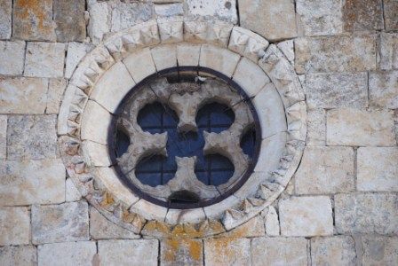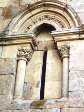 Y el rosetón tetralobulado con cenefa con chambrana de puntas de diamante colocado actualmente en el hastial occidental.